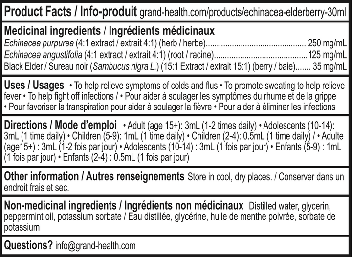 Grandhealth® Echinacea + Elderberry utilizes the whole Echinacea root, herb and Black Elder Berry which have all of their natural components in the amounts found in nature for immunity system support.