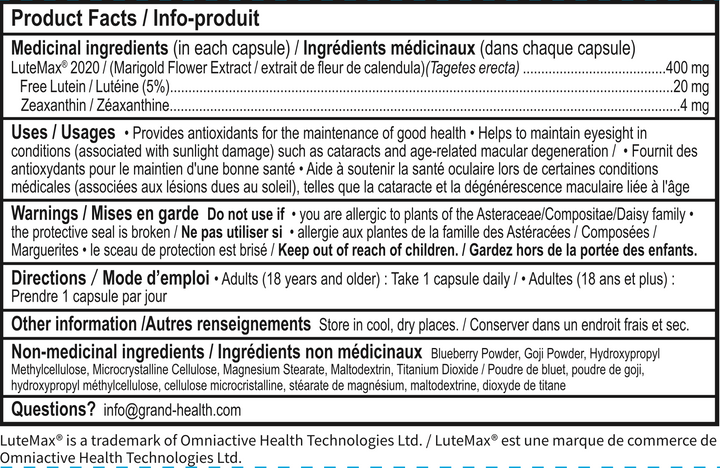 - Grandhealth® uses patented LuteMax® from OmniActive, a superior source of lutein extracted only from the highest quality Marigold Flower. It helps to support eye health .