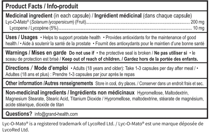 Lyc-o-mato®, also called the tomato lycopene complex, is a patented natural tomato complex used in Grandhealth® Lycopene Gold. This superior form of lycopene contains many health promoting phytonutrients such as beta-carotene, tocopherols, phytoene, phytofluene and phytosterols.