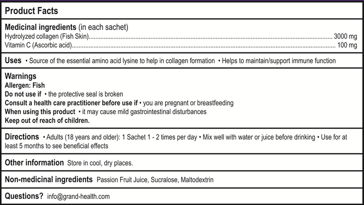 Grandhealth® Marine Collagen Tripeptide II is a superior source of marine collagen tri-peptide harvested from sustainable, wild fish skin without the use of heat or enzyme during the extraction process. It contains the finest (280Da) low molecular collagen tri-peptide for enhanced absorption and bioavailability.