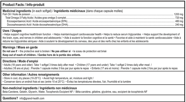 Grandhealth® Omega Supreme is the ultimate omega formula for those looking for a higher potency of EPA and DHA concentration. Studies show that taking fish oil with EPA and DHA.
