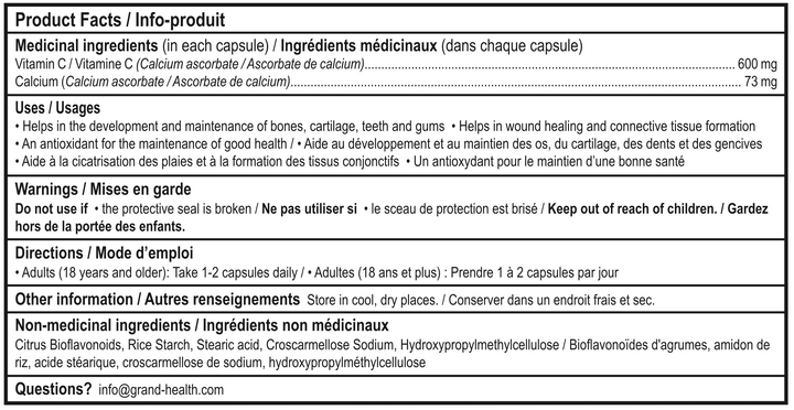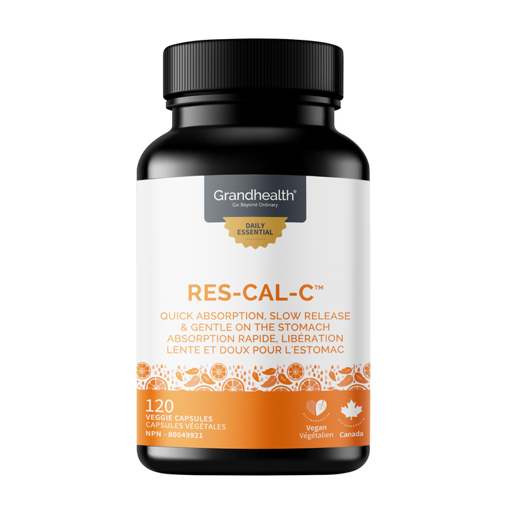 Grandhealth® Res-Cal-C uses the 600mg of calcium ascorbate form so that calcium 'buffers" the vitamin C making it more gentle on the system and better absorbed. Of course vitamin C don't work on it's own. So we included some extra bioflavonoids to push it up a notch and provide some extra antioxidant power.